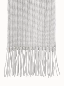 Long chunky ribbed scarf with fringes is made from the wonderfully soft wool-cashmere blend will warm you up on a chilly day. You might like to style it with a matching beanie to complete your outfit.
