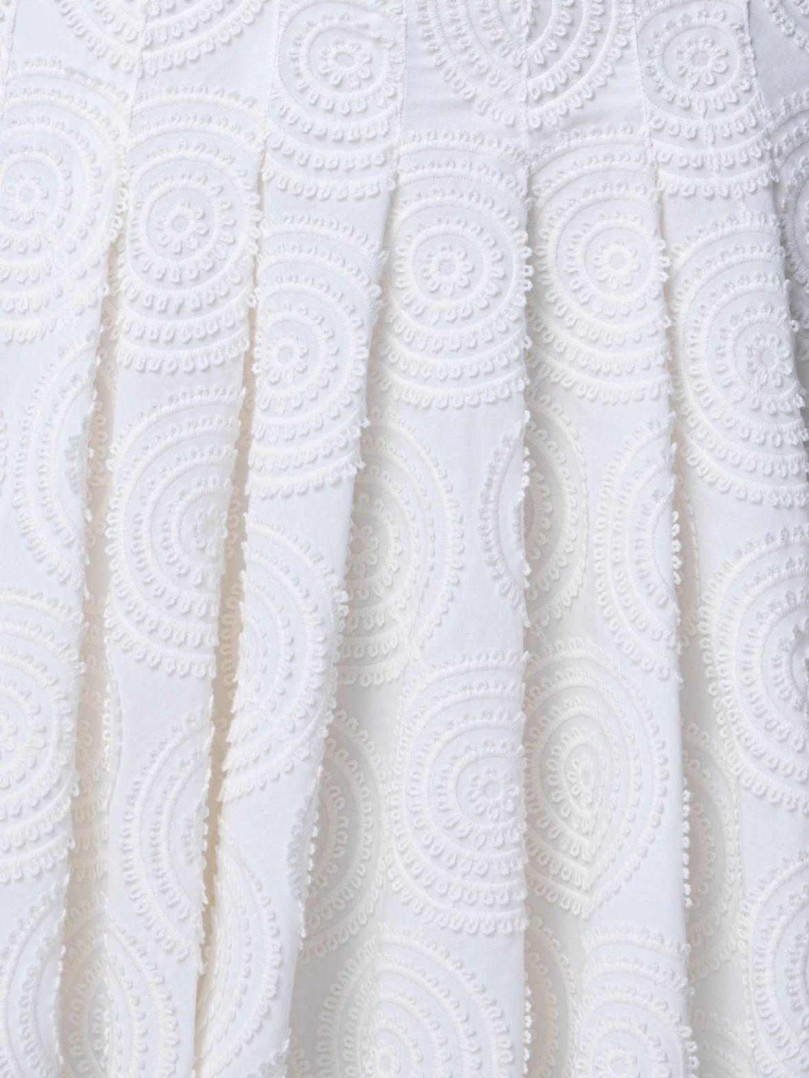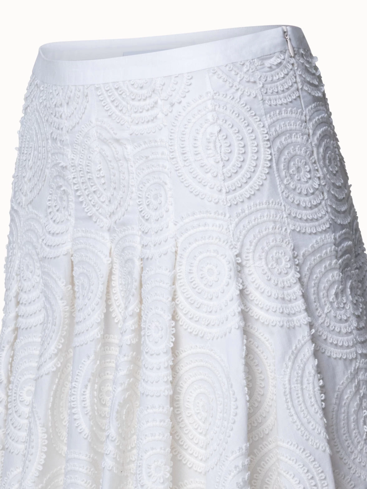 Cotton Batiste Midi Skirt With Circle Loop Embroidery