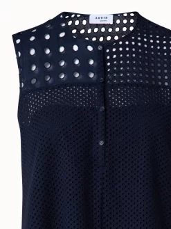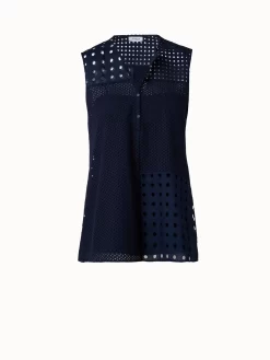 When it gets hot outside, this Akris punto blouse is the perfect piece to cool you down while ensuring a chic look. Crafted in a patchwork of different-sized eyelet embroideries on cotton, it is a truly light style. This blouse features a round neck and button closure for a timeless look. The elongated back hem and back pleat underline the airy silhouette.