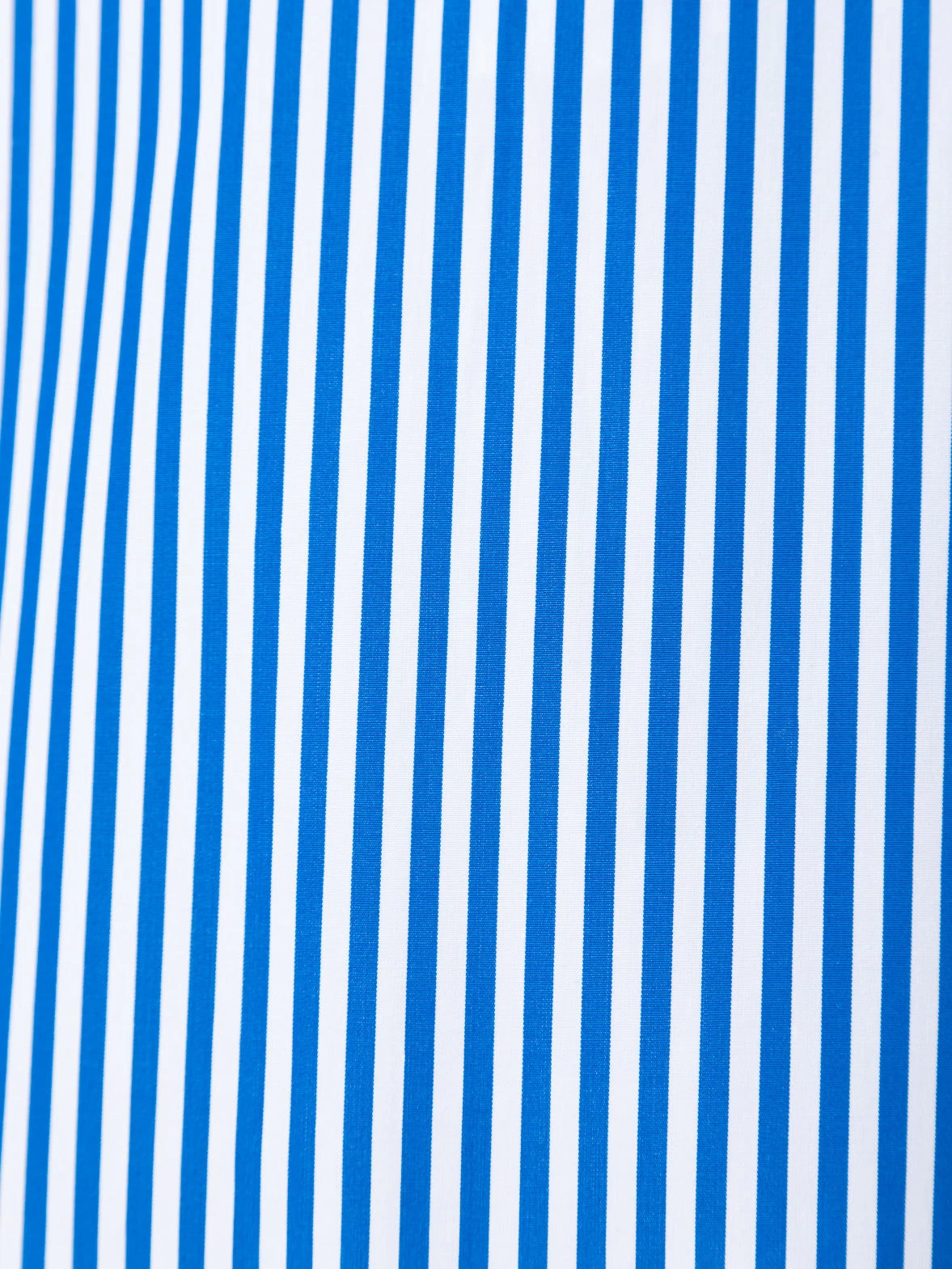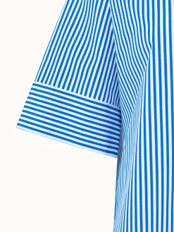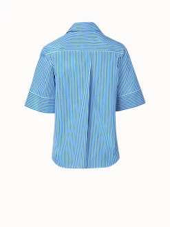 This Akris punto blouse is crafted in striped cotton poplin. It is cut in an A-line silhouette that is accentuated by the back pleat. Half sleeves create airy volume. Features a spread collar and half zip.