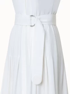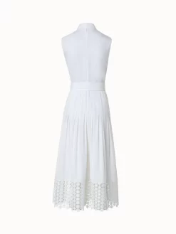 This Akris punto midi dress is crafted in cotton poplin with kaleidoscope dot guipure embroidery at the bottom hem and chest that creates an elegantly airy look and feel. This sleeveless A-line silhouette features a kent collar and a concealed button closure. The included belt accentuates the waist.