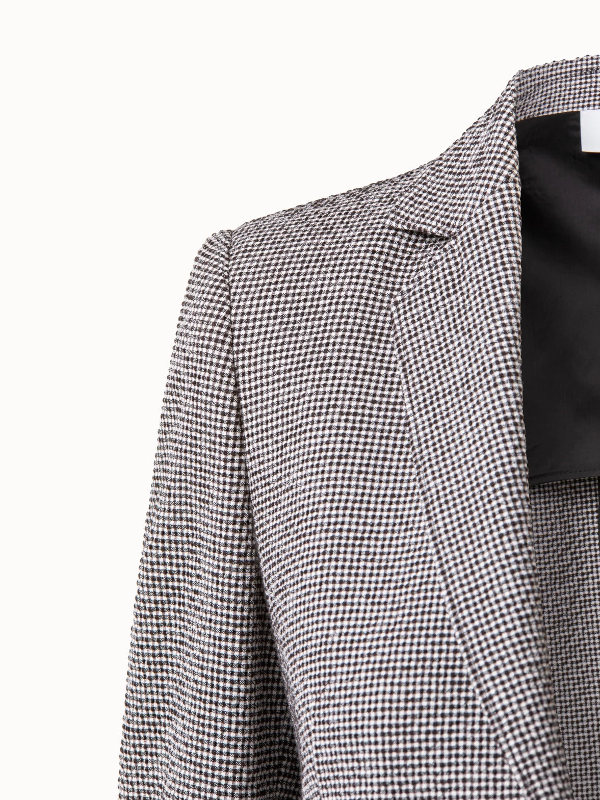 This Akris punto blazer is crafted in cotton seersucker with micro vichy. It features a classic lapel collar, one button closure, and jetted pockets. The turn-up sleeves are a sophisticated tailoring detail. Cut for a fitted feel.