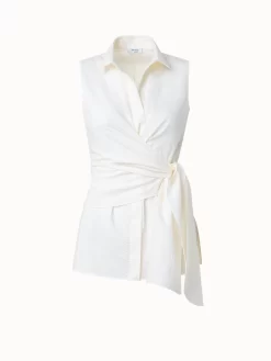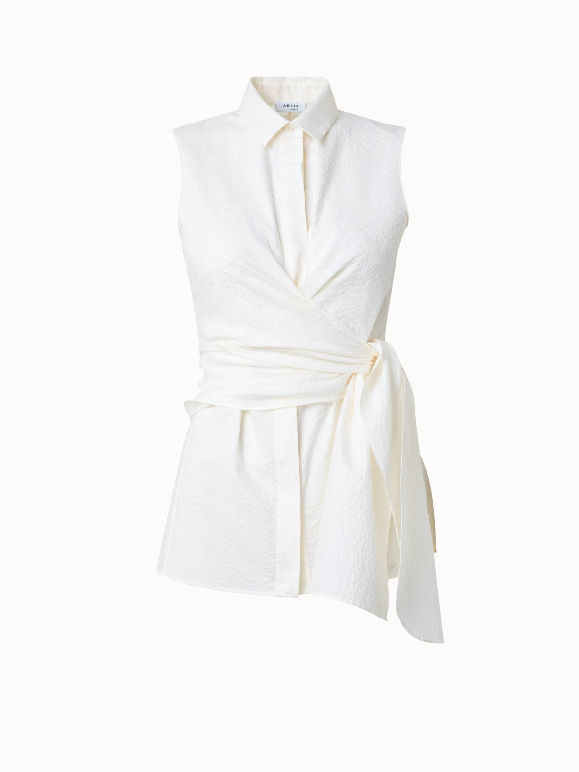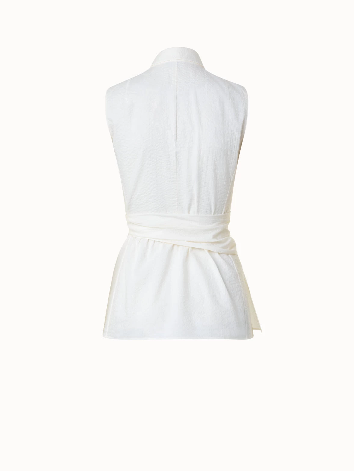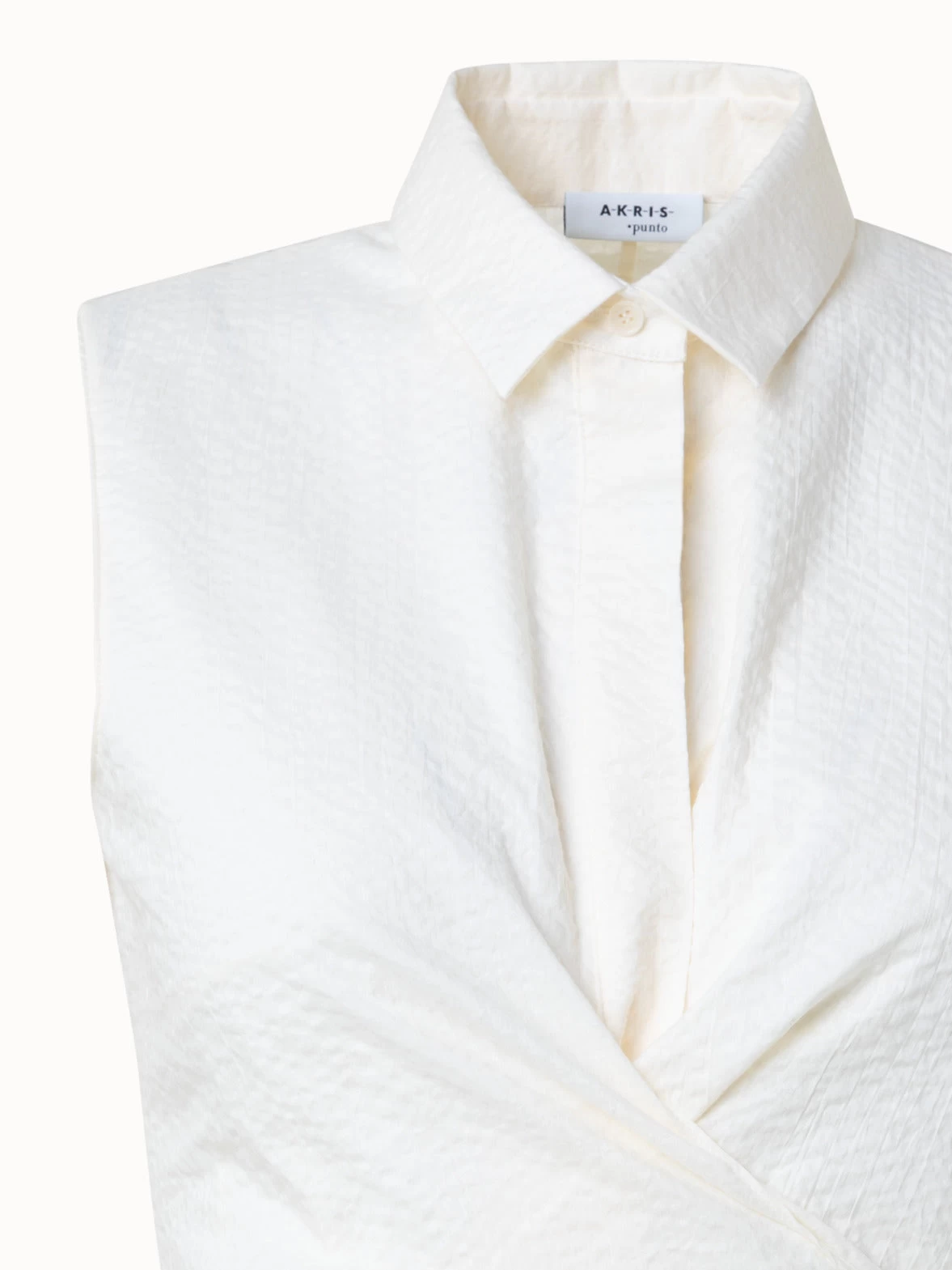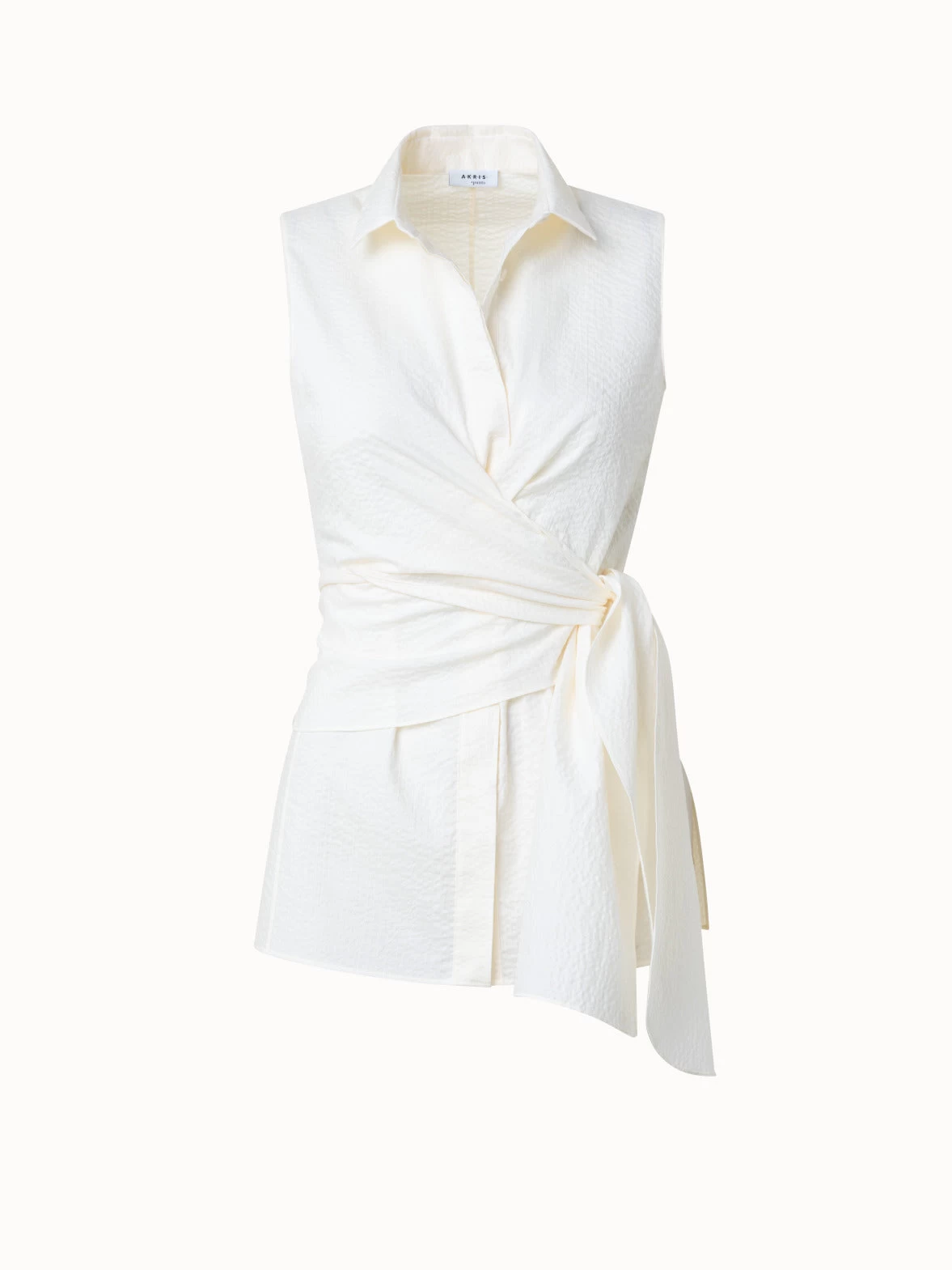 Wrap yourself in this Akris punto blouse for an elegant look during spring and summer. Crafted in lightweight cotton seersucker, it offers a structured look and comfort in warm weather. The wrap detail hugs the body, creating a flattering silhouette. Features a kent collar and concealed button closure.