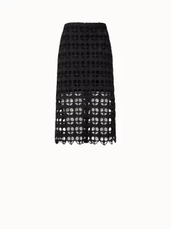 This Akris punto pencil skirt is crafted in dot cut-out guipure embroidery that showcases the signature Akris punto shape in a feminine and fresh way. The half-lining creates a layered look, and side slits allow for easy movement in this midi skirt. Closes with a zip on the back. Pair it with the matching pullover or blouse for a stand-out look.