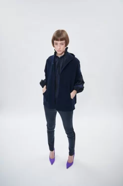 This Akris punto shirt jacket is a lightweight mixed-media design perfect for the warm-weather season. It is crafted in a dot mesh techno guipure embroidery with washed denim xl patched pockets, collar, cuffs, button placket, and shoulder panel that create structure. The oversized silhouette and back yoke add to the airiness of this design.