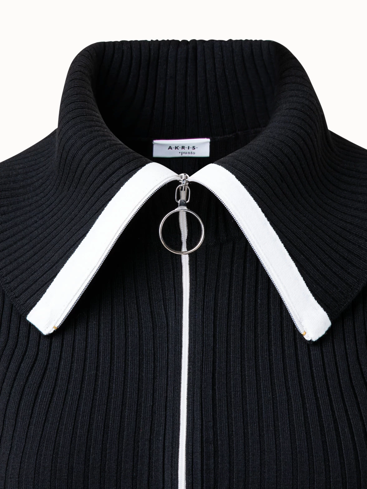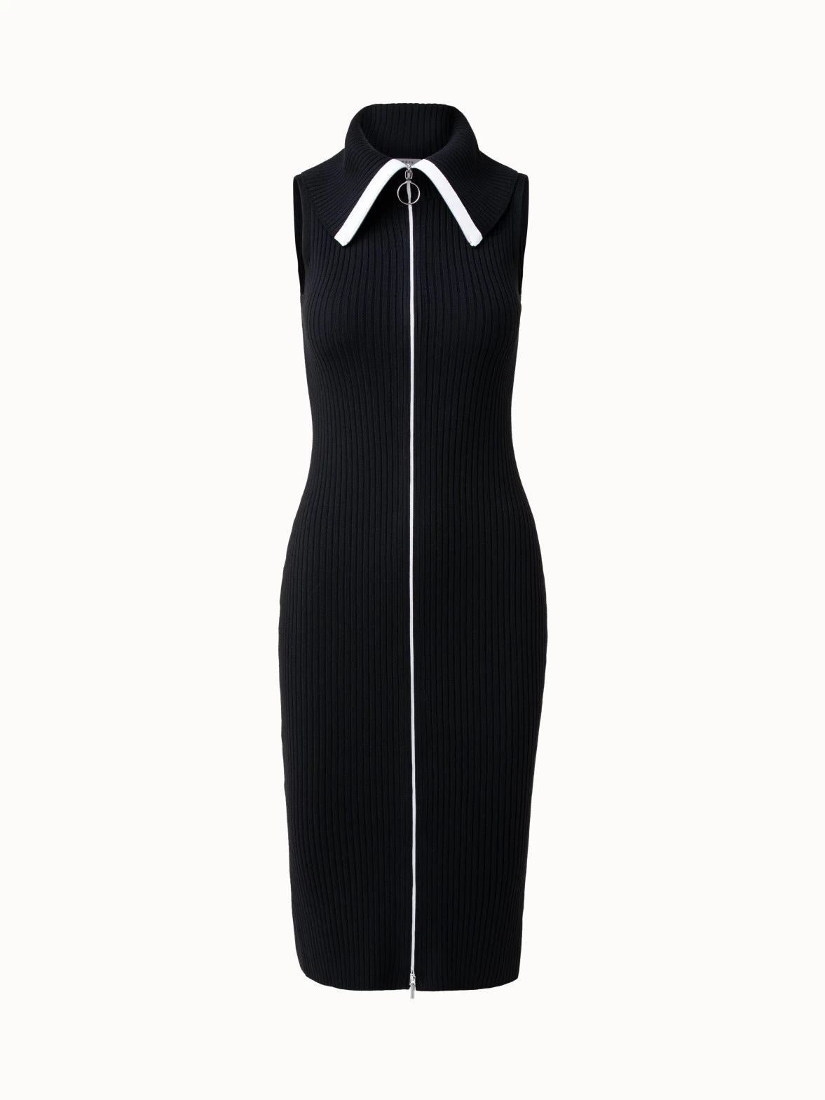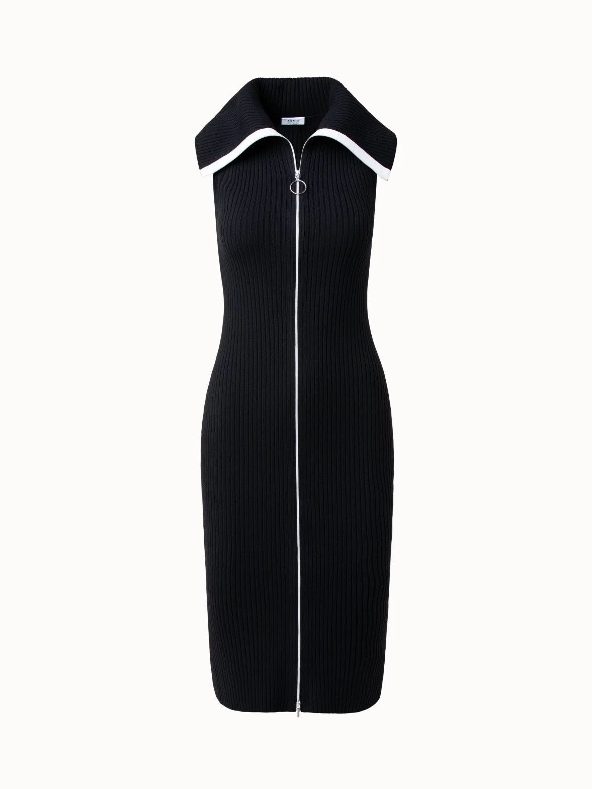 Contrasting full-length zip closure with signature Punto puller and oversized collar give this knit dress a sporty touch. It is designed in a slim, longline silhouette and made from ribbed lightweight and soft wool.