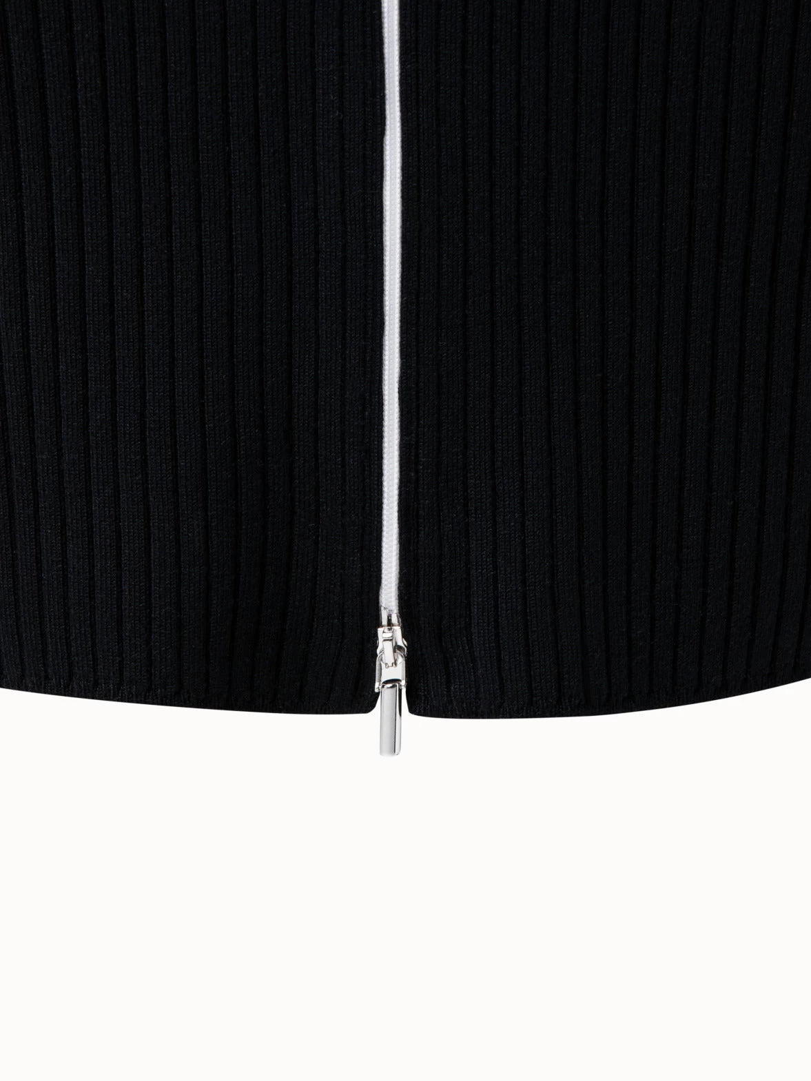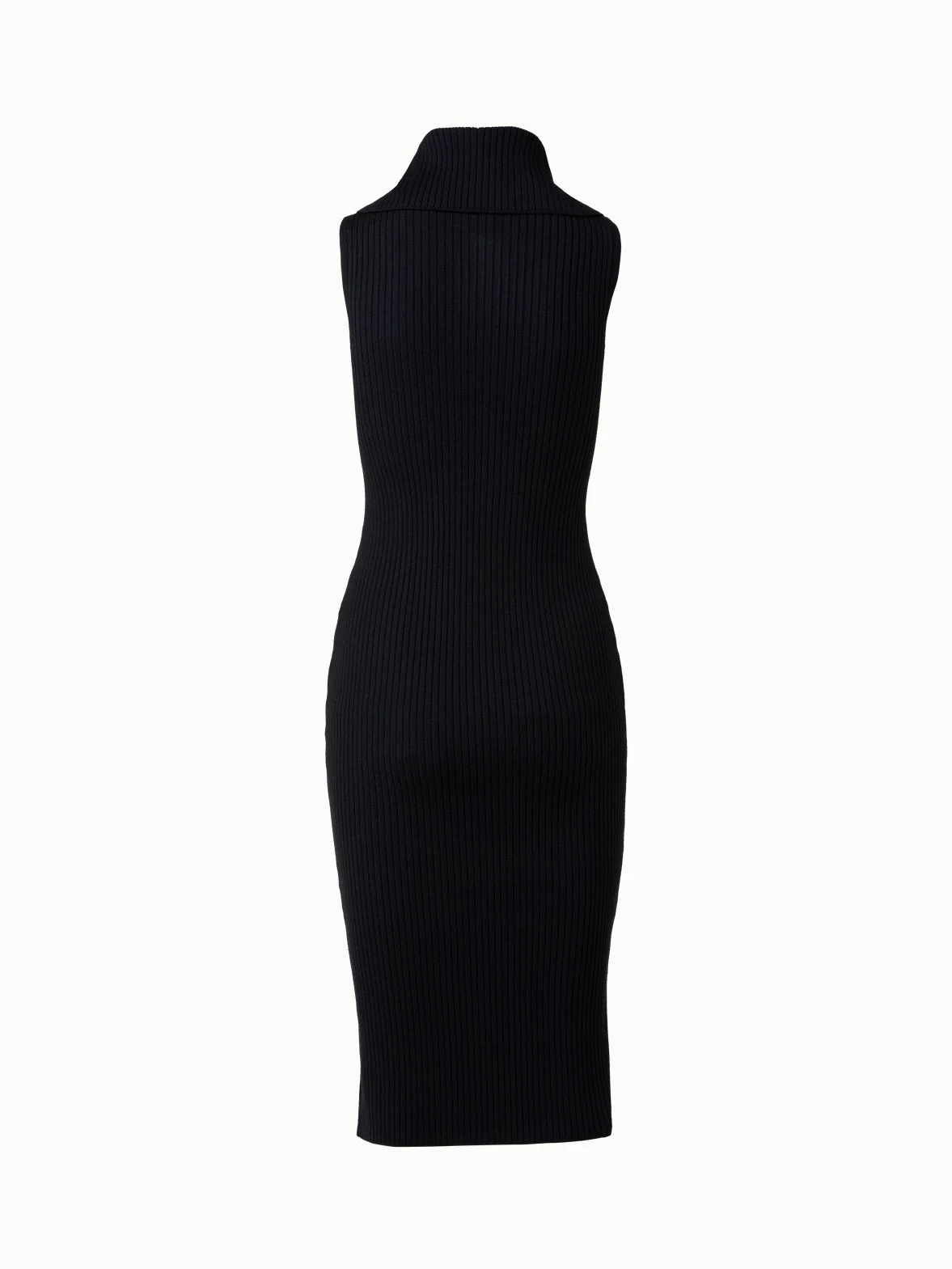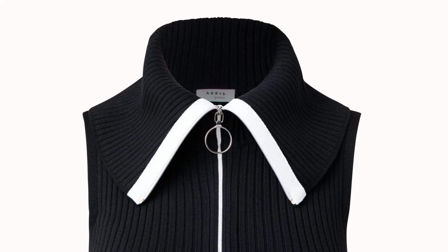 Contrasting full-length zip closure with signature Punto puller and oversized collar give this knit dress a sporty touch. It is designed in a slim, longline silhouette and made from ribbed lightweight and soft wool.