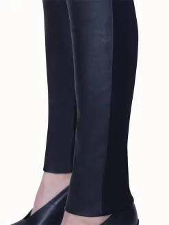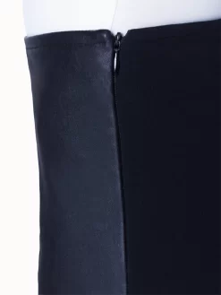 Fancy long pants in lamb nappa leather on the front pannel and jersey pannel at the back. The trousers have a side closure.