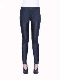 Fancy long pants in lamb nappa leather on the front pannel and jersey pannel at the back. The trousers have a side closure.