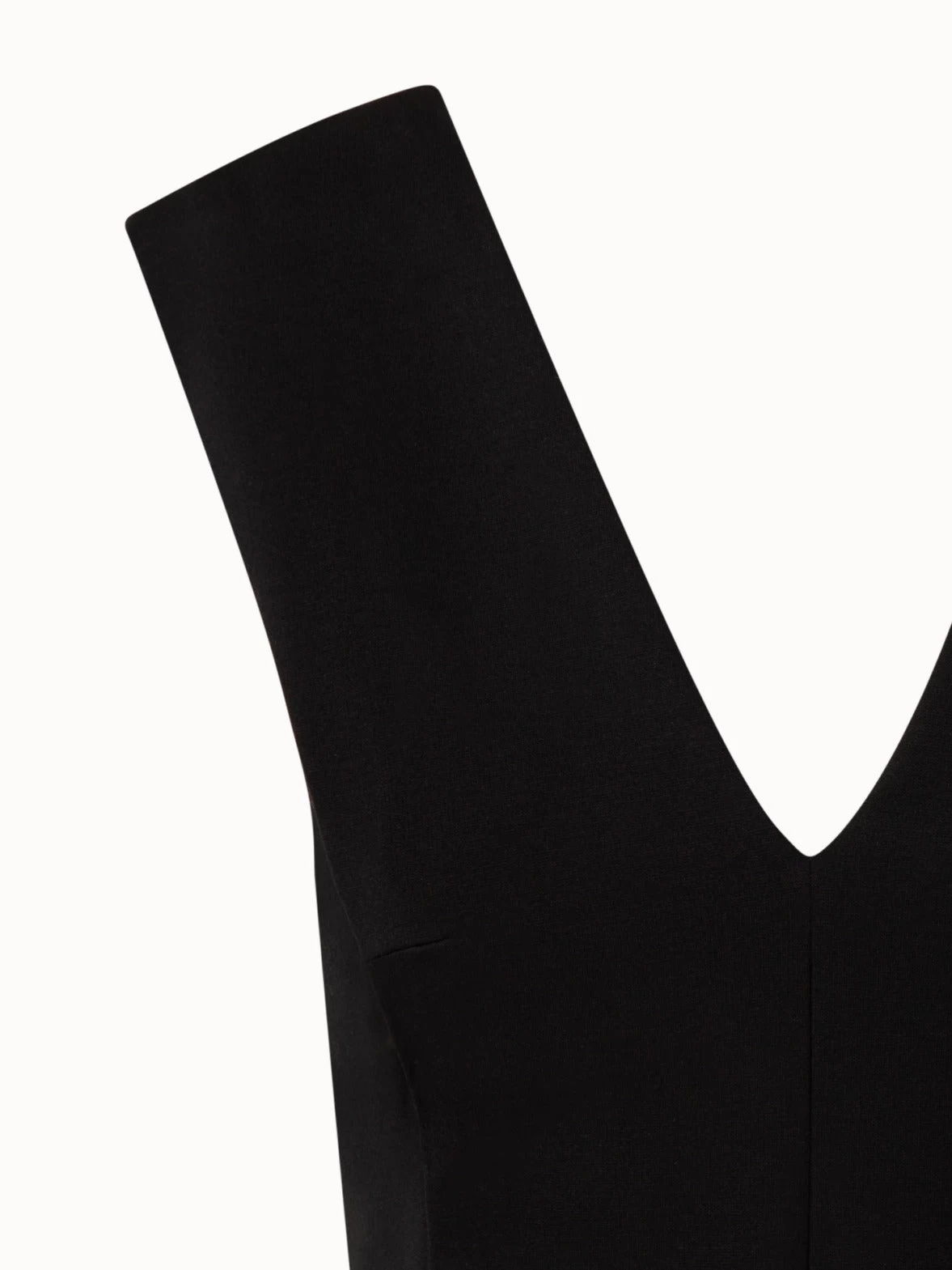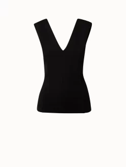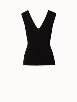 This elegant sleeveless top is crafted in signature Akris punto jersey. It features a feminine front and back v-neck. The front fold detail adds structure to the fitted silhouette. With back zip closure.