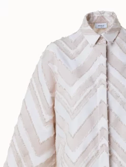 Fringed Zigzag Cotton Blend Jacquard Blouse