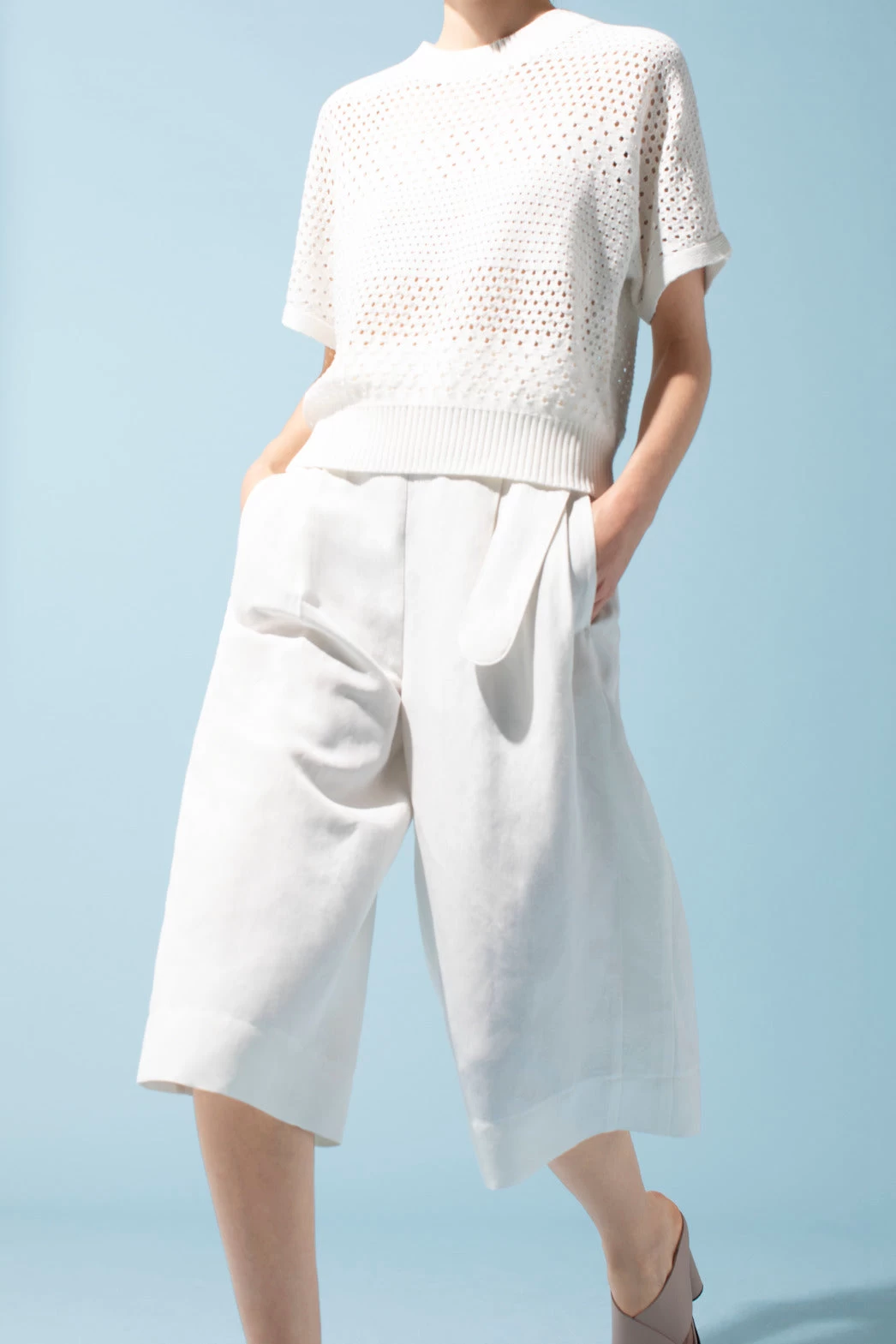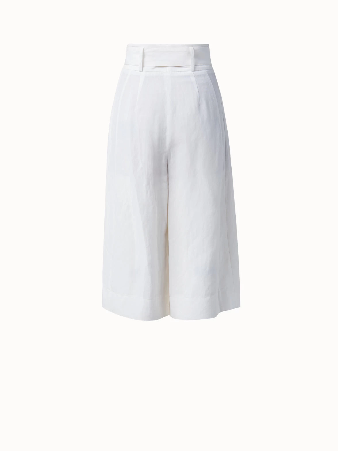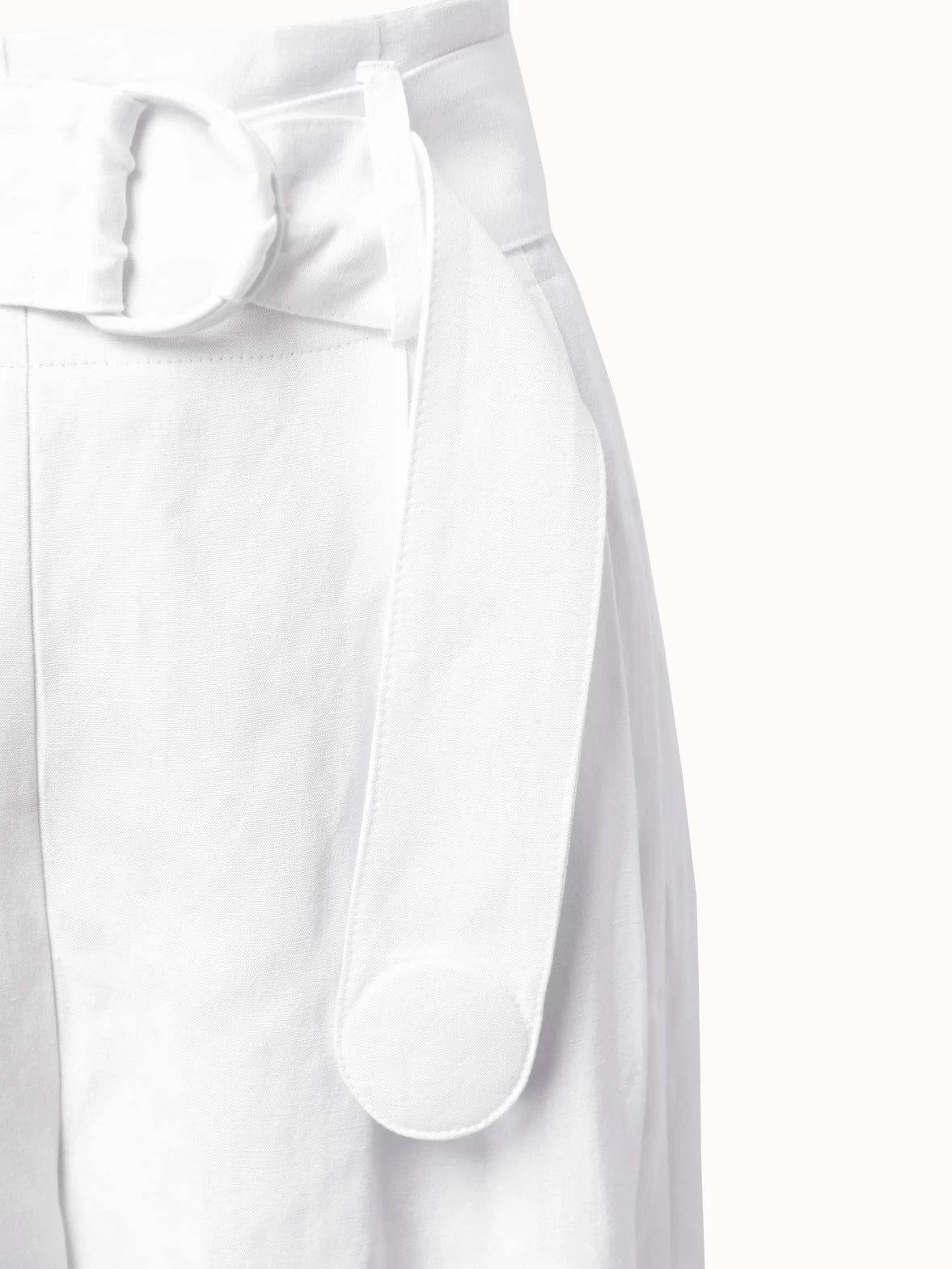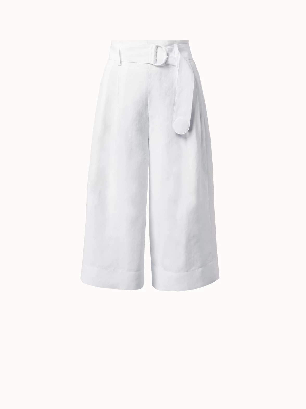 Chic and modern, these linen pants are easygoing and lightweight. The wide leg, cropped silhouette creates an effortless, breezy proportion while a waist belt adds shape. Features a side zip.