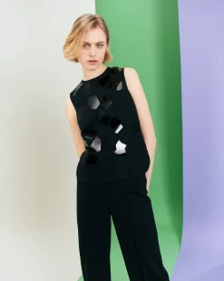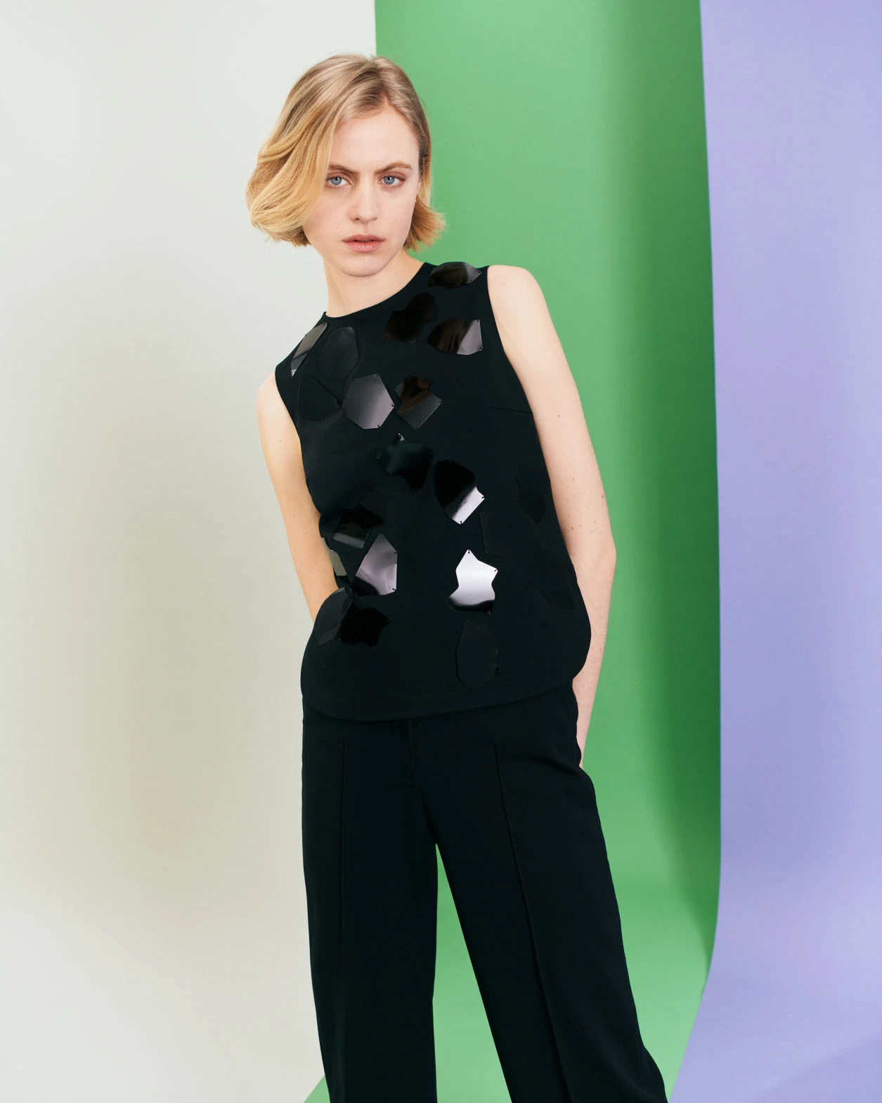 XL Kaleidoscope Sequins add an exciting structure, shine, and pattern to this otherwise minimalist Akris punto top. Crafted in signature jersey, it wears light and airy in summer. Closes with a back zip.