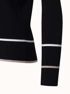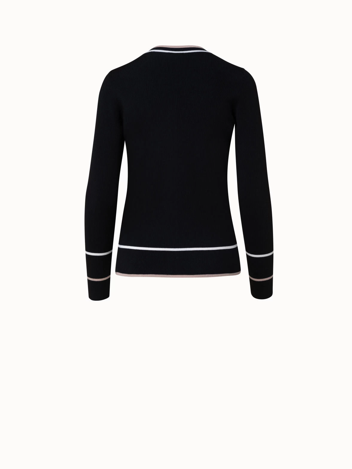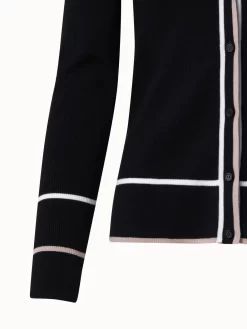 This Akris punto merino wool cardigan features color-blocking around the neckline, button placket, and cuffs, creating a playful visual detail. Cut for a fitted silhouette.