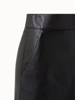 Must have item: bold, perforated signature pin dot leather skirt in knee length with slash pockets. The soft lamb nappa is totaly convincing.