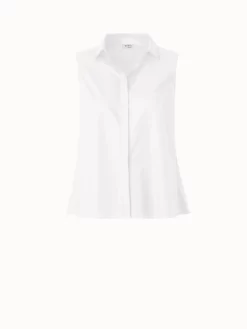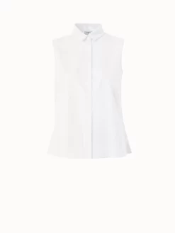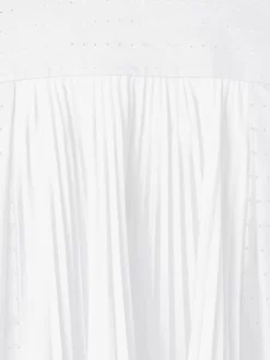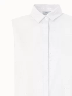 This Akris punto blouse is crafted in a perforated cotton poplin with a sunray plissée back that adds a beautiful structure and playful yet elegant movement to this style. The blouse features a kent collar and concealed button closure. The slight A-line creates a flattering silhouette.