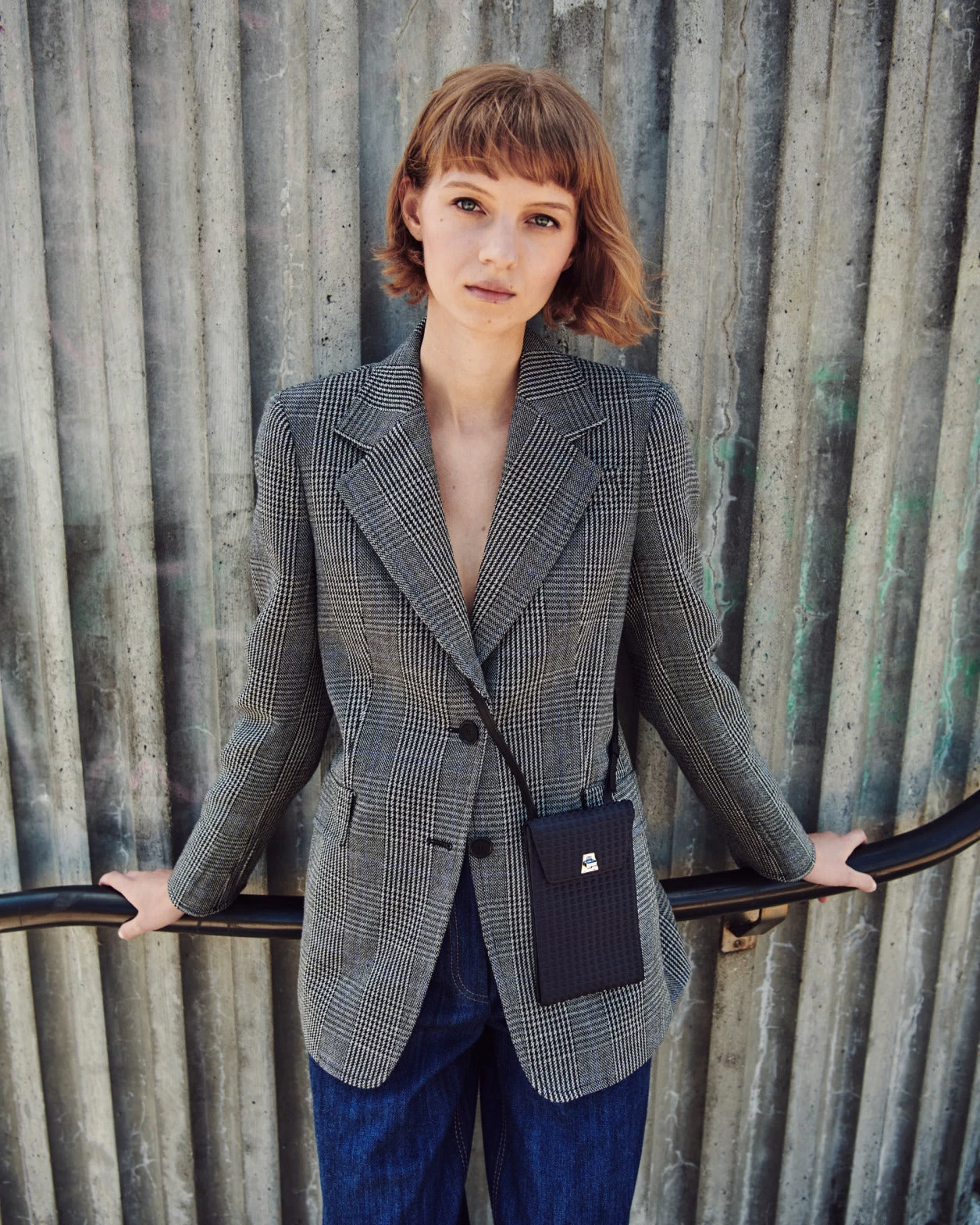 Wear the plaid blazer as a pantsuit with the matching wool pants and complete your outfit with business elements pieces from the Akris punto Elements Collection. A business bag completes your office look.