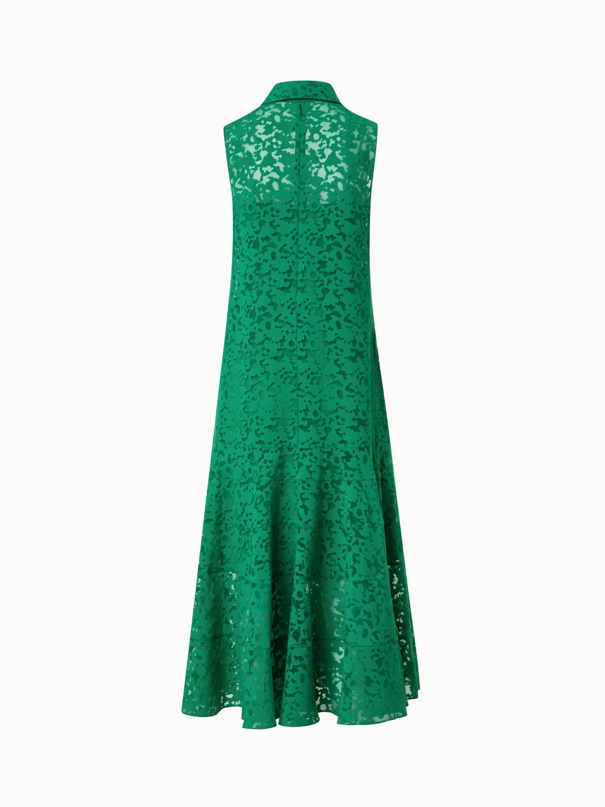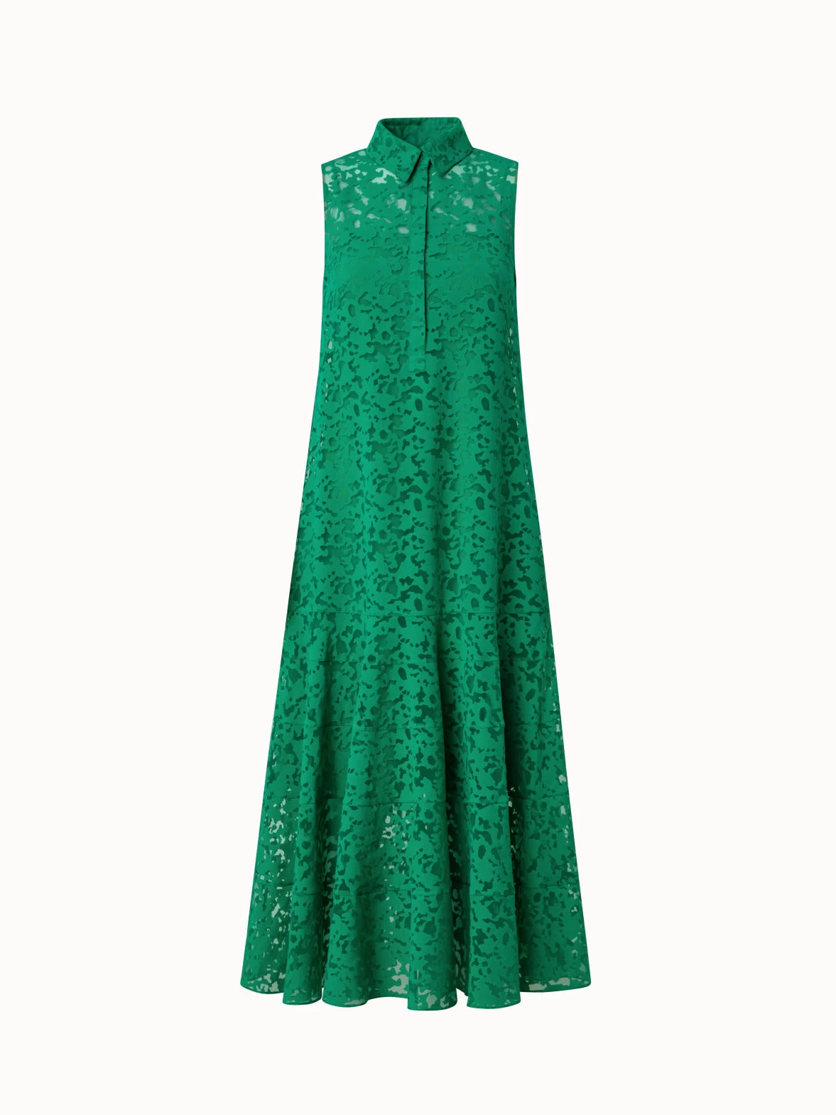 This Akris punto midi dress is crafted in a lightweight kaleidoscope organzino that plays with structure and transparency. The sleeveless top features a polo collar and a covered button placket that create a sleek look. The tiered A-line skirt creates a natural flow and completes this easy-going silhouette. Side seam pockets add functionality. Includes a slip dress.
