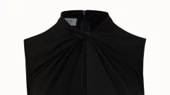 Sleeveless Cotton Jersey Top With Knot Collar And Eyelet Detail
