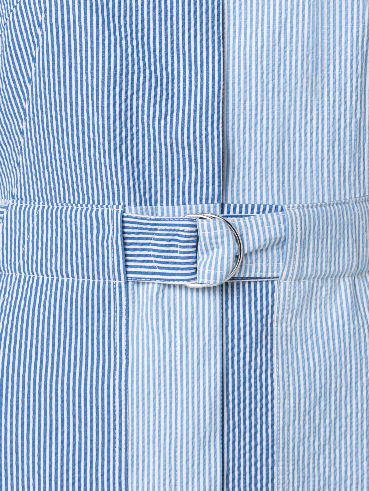 Sleeveless Cotton Seersucker Patchwork Midi Dress