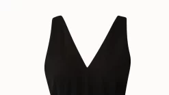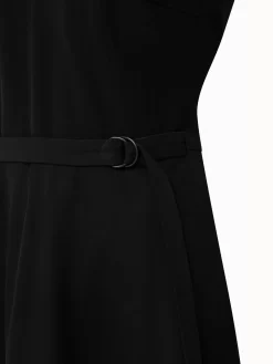 A black dress is always the right choice for evening occasions. This Akris punto sleeveless midi dress is crafted in the softest washed cotton with Ottoman rib. The skirt is cut as a semi-circle and features side seam pockets. The front and back V-neck create a flattering top. The dress comes with a D-ring belt to cinch your waist for a sculptural silhouette.