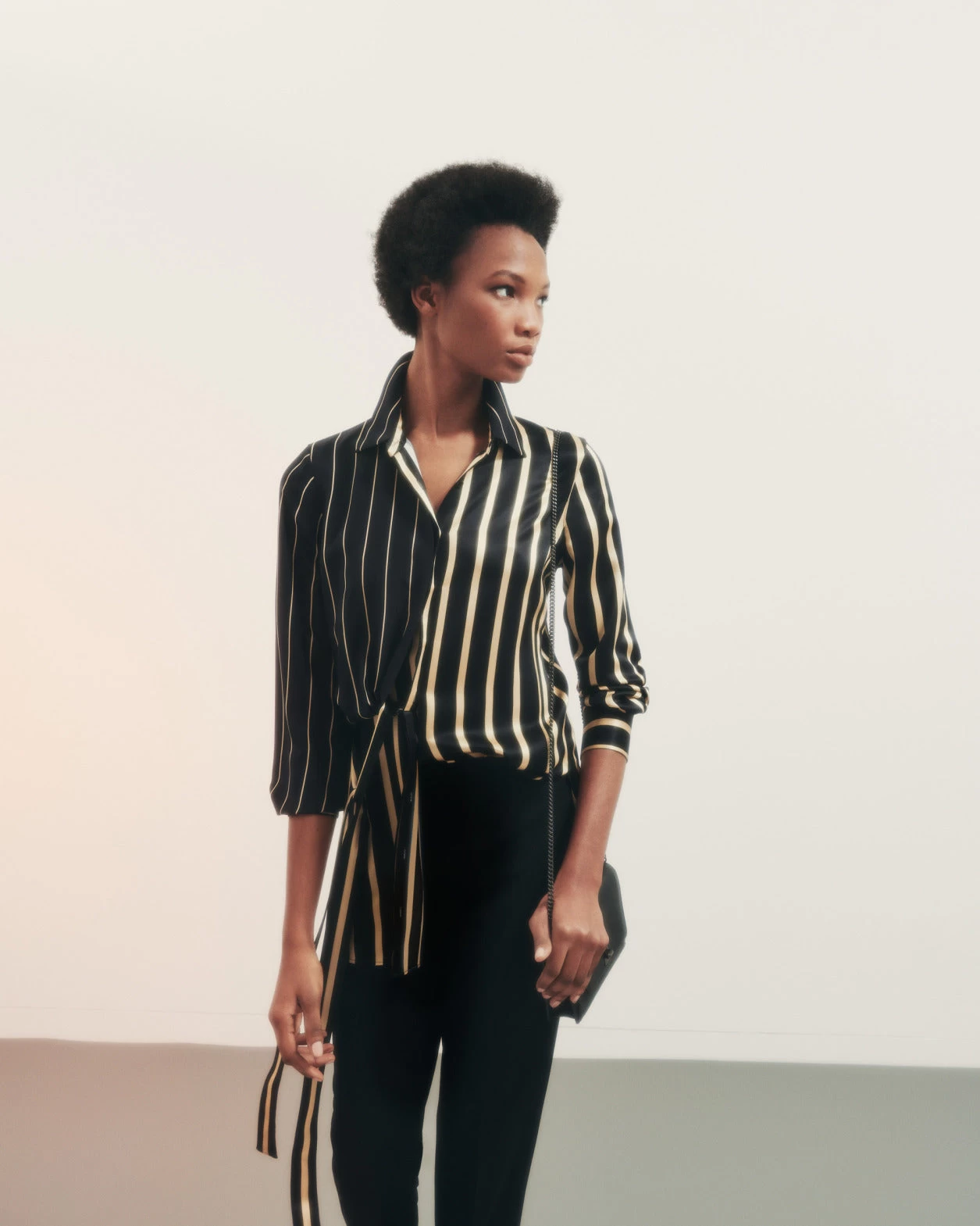 A business elements pant that you will pack into your suitcase on every business trip. The jersey pant is comfortable, yet has a timeless look thanks to its straight leg. It has a front zip closure and concealed back pockets. Wear the full-lenght business pant with an Akris punto top or blouse, matching blazer and a coat. Find the right handbag for any event from the office to the evening in our handbag guide.
