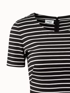 Signature Akris Punto stripe jersey t-shirt, half sleeve, round neck with invisible zip. It is the perfect red for fresh summer moments.