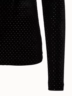 Velvet Mock Neck Top With Rhinestone