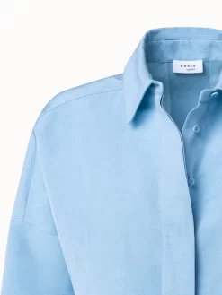 This Akris punto blouse is the summer shirt of your dreams. Crafted in a viscose linen blend, it regulates temperature and keeps you cool on warm and hot days. Cut for a relaxed fit with dropped shoulders, and a back pleat and side slits that create an airy silhouette, it is easily dressed up or down. The shirt collar and concealed button closure create a timeless look, while the three-button cuffs add a sophisticated tailoring detail.