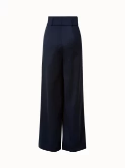 These Akris punto Florina pants are crafted in refined wool gabardine. They are designed to sit high on the waist and feature full-length wide legs with front pleat details. The large belt loops allow for the combination with various belts, while a side zip and seam pockets keep the silhouette clean.
